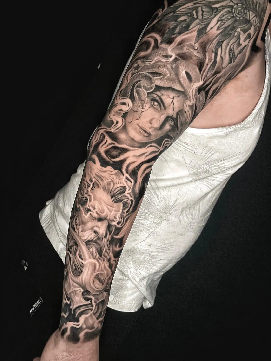 Studio Pittorico: Ogni tatuaggio inizia con un'approfondita analisi di luci, volumi, composizione e anatomia, proprio come un dipinto tradizionale. Questo garantisce la massima tridimensionalità e impatto visivo.